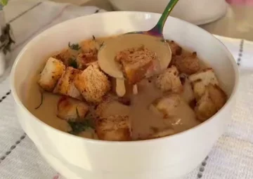 Подаємо із зеленню, сухариками і, при бажанні, посипаємо хрусткою цибулею фрі. Цей крем-суп не просто зігріває, він створює атмосферу затишку та тепла, немов м'який осінній плед на плечах.