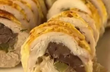 Якщо ви шукаєте рецепт, який поєднує ніжне куряче філе, вершкову печінкову начинку та хрумкі нотки солоного огірка, цей варіант рулетиків точно стане прикрасою вашого столу.