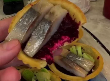Тарталетки з оселедцем та буряком, кадр з відео -