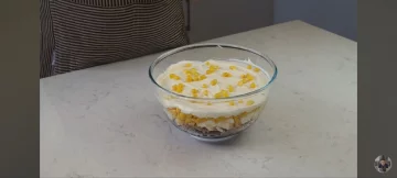 ПодписатьсяРазноцветные слои фасоли, тунца, яиц, кукурузы и майонеза делают салат зрительно привлекательным и питательным.