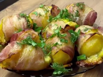 Картофель с беконом, запеченный в духовке -