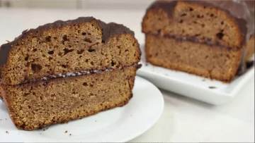4. Получившееся тесто аккуратно перелейте в предварительно смазанную маслом и застеленную пергаментом форму размером 21 х 10 см. Выпекайте в духовке, разогретой до 170 °C, на среднем уровне в течение 60-65 минут. Готовность проверьте деревянной шпажкой: если она получается чистой, то пирог готов. Дайте ему немного остыть в форме (около 15 минут), а затем выложите на решетку до полного остывания.