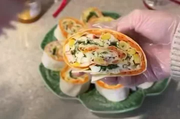 Перед подачей нарежьте рулет кусочками толщиной 2–3 см. Получается закуска, которая выглядит нарядно, пахнет соблазнительно и съедается быстрее, чем вы успеваете сказать: "Может, ещё один кусочек?". И да, рецепт можно адаптировать под себя: вместо крабовых палочек — куриная грудка или красная рыба, вместо майонеза — творожный сыр. Но сам принцип остаётся тем же: слои, щедрая начинка и обязательное «отдохнуть» в холодильнике.