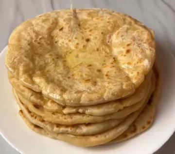 Жарение. Нагрейте сухую сковороду на сильном огне. Обжаривайте лепешки по 2 минуты с каждой стороны до золотистой корочки и появления пузырьков.