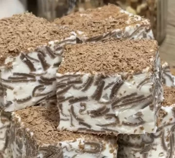 К готовому крему добавляем нарезанные блины. Все перемешиваем, выкладываем в форму, застеленную пергаментом, и оставляем в холодильнике на 2–3 часа для застывания.