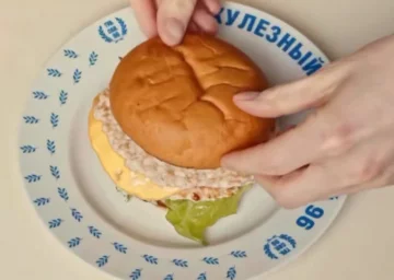 Сборка — финальный штрих. Обе половинки булочки щедро смажьте соусом, выложите лист айсберга, затем сочную куриную котлету с расплавленным сыром и накройте верхней частью булочки.